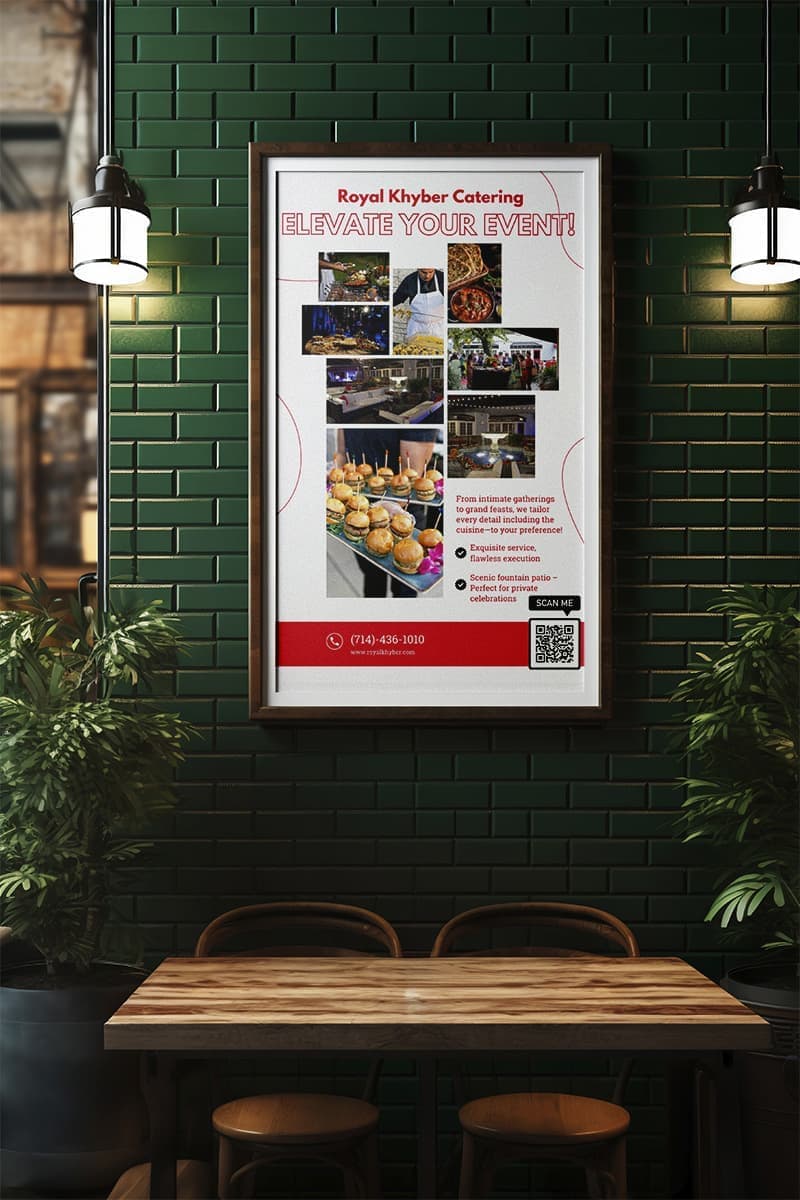 Orrku Media collaborated with Royal Khyber, a renowned Indian restaurant in Santa Ana, to transform their digital presence. We revamped their website for enhanced user experience, redesigned their menu to reflect their authentic culinary offerings, created eye-catching promotional posters for offerings such as buffet and catering services, and strategically managed their social media platforms, boosting customer engagement and brand visibility.